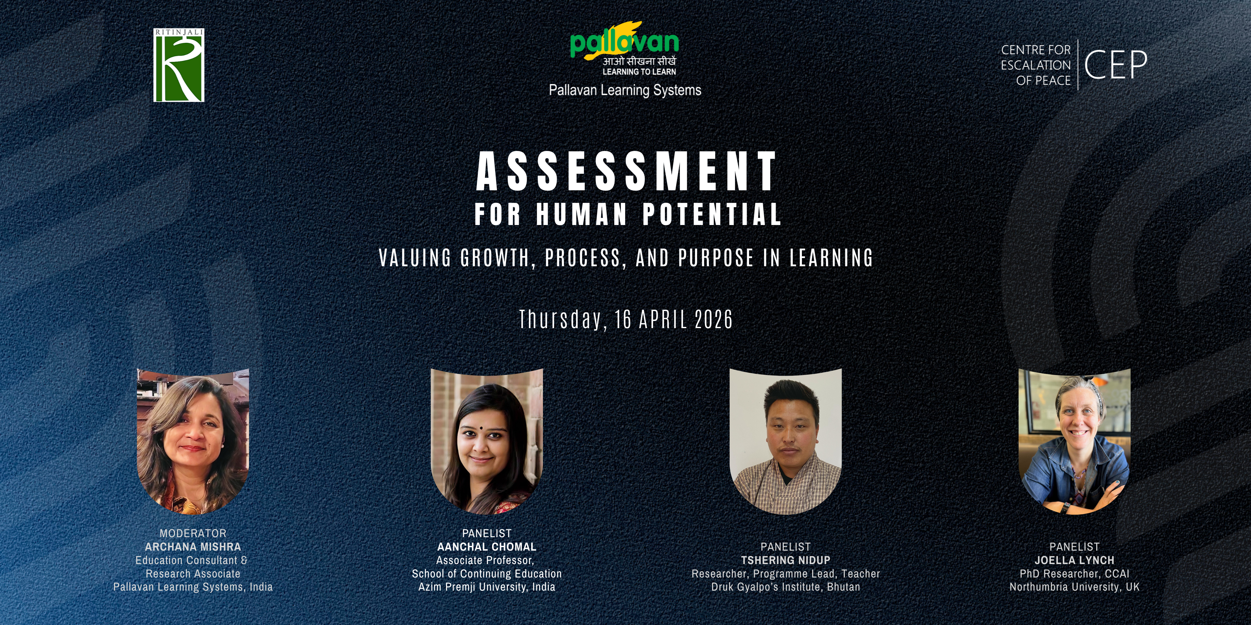 On 16 April 2026 Pallavan Learning Systems hosted a webinar on the theme, ‘Assessment for Human Potential: Valuing Growth, Process, and Purpose in Learning' in association with Centre for Escalation of Peace and Ritinjali.